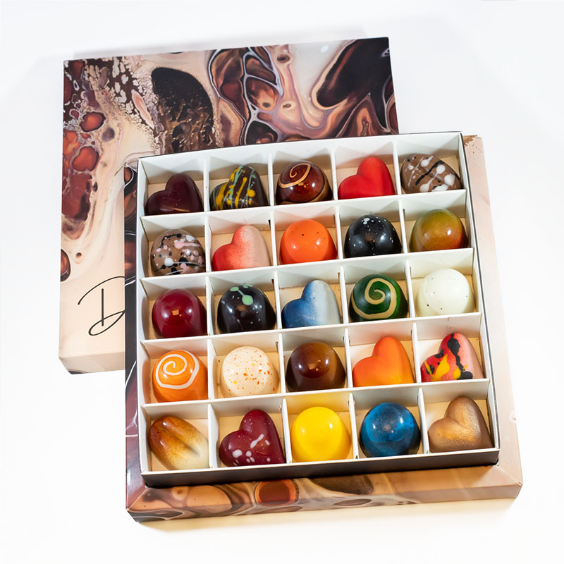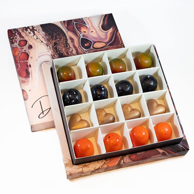 Vår julekonfektkolleksjon inneholder et bredt utvalg av smaker inspirert av sesongens mest elskede smaker. Unn deg kremet sjokolade, krydret godteri og fruktige herligheter som får frem det beste av vinterens smaker. For sjokoladeelskere tilbyr vi luksuriøse trøfler med smaker som mørk sjokoladeganache, hasselnøtt og salt karamell.