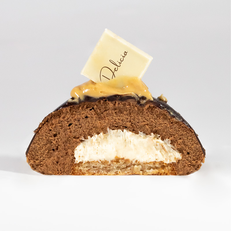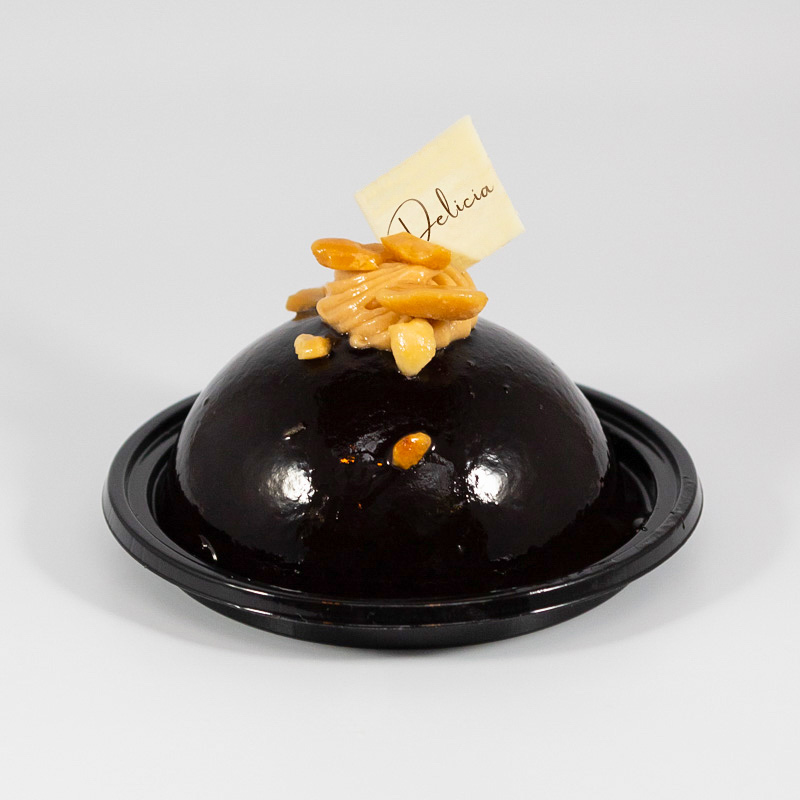Mørk sjokolademousse med peanøttkrem fyll og mandelbunn. Smaken av salte peanøtter sammen med sjokolade har lenge vært en favoritt for mange. Samspillet mellom smakene passer perfekt sammen og passer perfekt som dessert. Kaken er glutenfri, og kan tilpasses etter ønske med ekstra pynt og skrift. Kaken kan også kjøpes som stor kake i flere størrelser.
