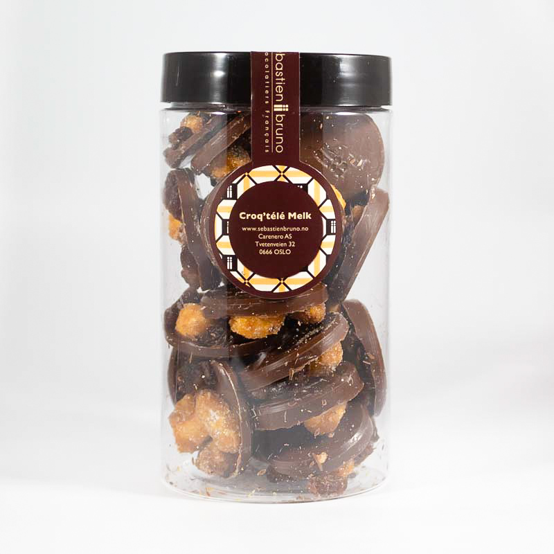 Single origin mørk sjokolade 40% kakao med ristede og karamelliserte pistasjnøtter, hasselnøtter, mandler og rosiner.