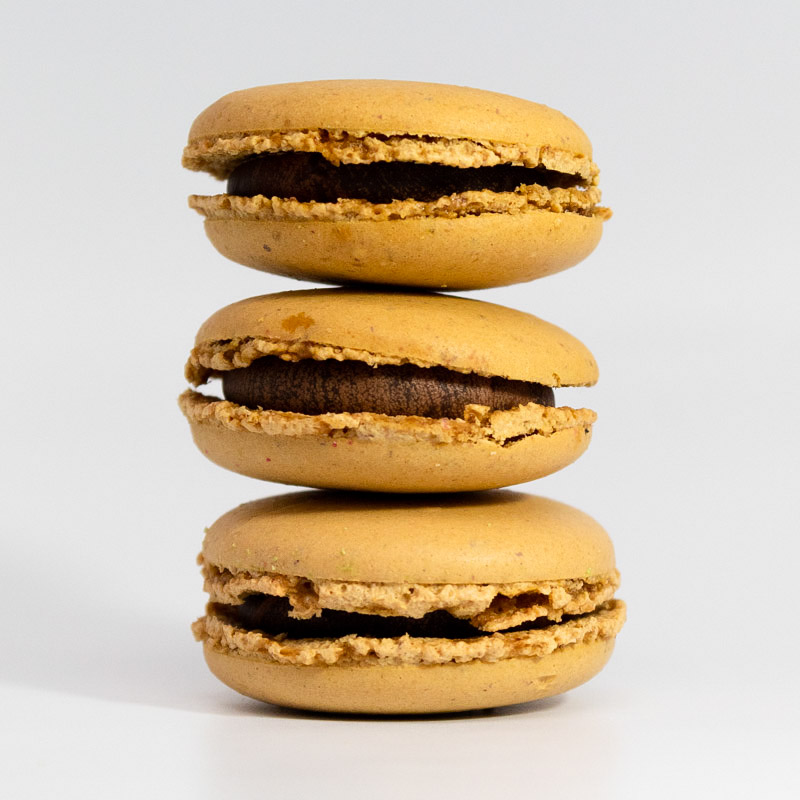 Mørk sjokoladeganasj blandet med kremfløte og kaffe. Et mildt, mykt og godt fyll med litt «voksen» smak. Makronene kommer i 6pk, 8pk, 12pk og 20pk, mens øvrige antall blir pakket i cellofanposer.