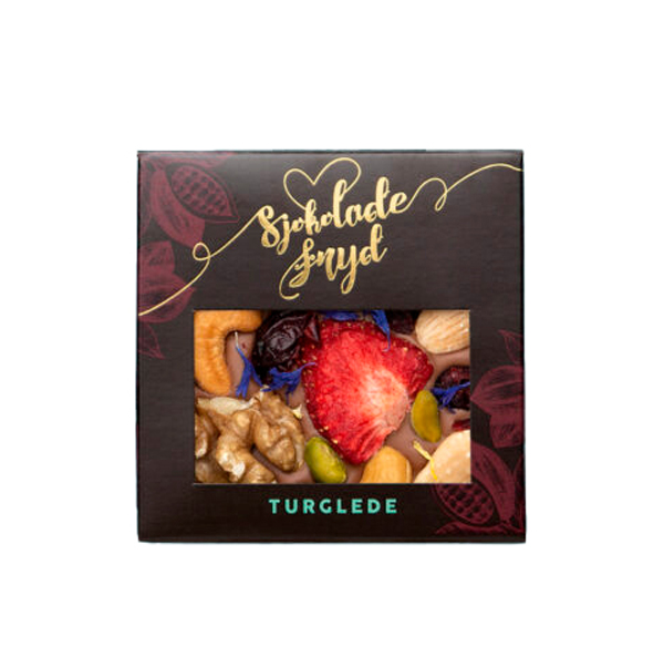 Ta turopplevelsen til nye høyder med Turglede i sekken! En plate melkesjokolade tettpakket med nøtter og bær, der hver eneste bit gir sin helt egne smaksopplevelse. Et herlig lite mellommåltid med nyttige antioksidanter, vitaminer og gode fettsyrer.